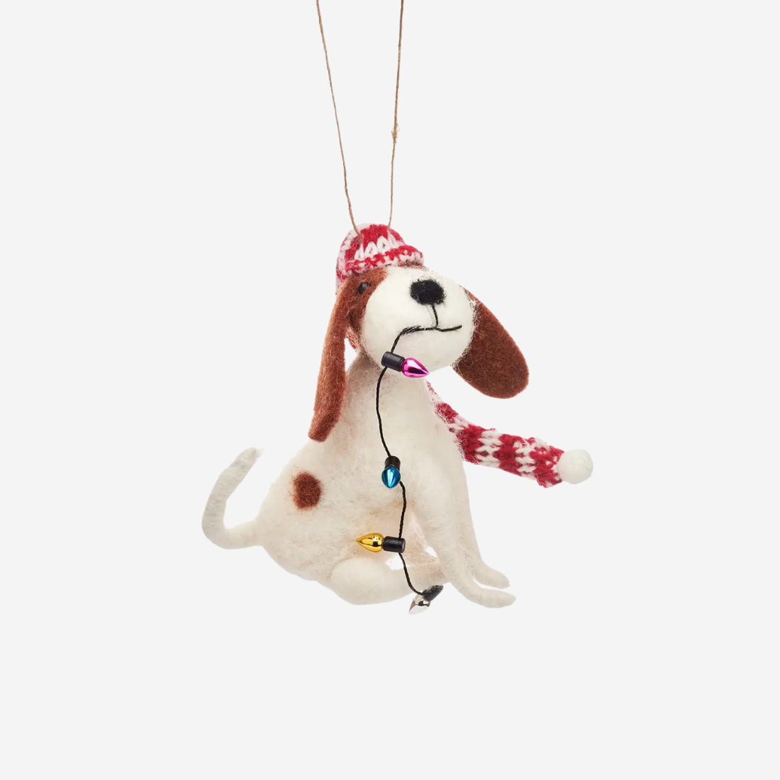 Dog with Fairy Lights // Juleophæng med julehund i filt