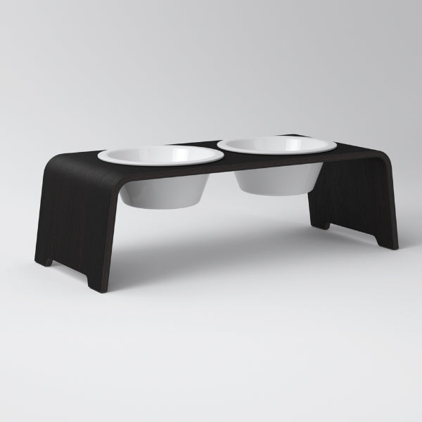 dogBar, Porzellannäpfe // Futter- und Wassernapfständer (Dunkle Eiche)