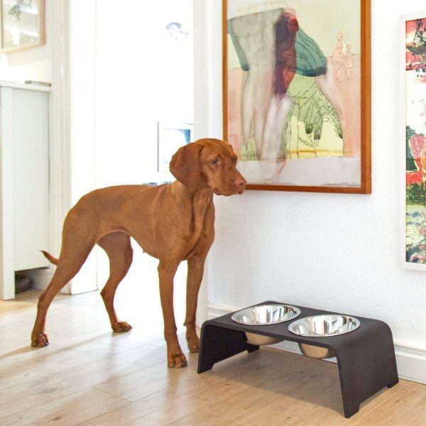 dogBar, Stahlnäpfe // Futter- und Wassernapfständer (dunkle Eiche)
