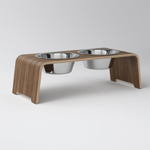 dogBar, Stahlnäpfe // Futter- und Wassernapfständer (Walnuss)