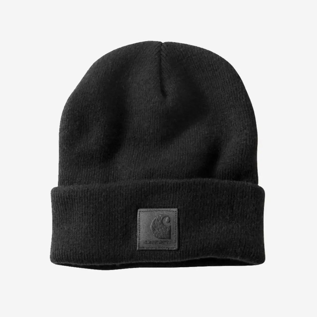 Carhartt Beanie // Strickmütze mit Lederlogo (schwarz)