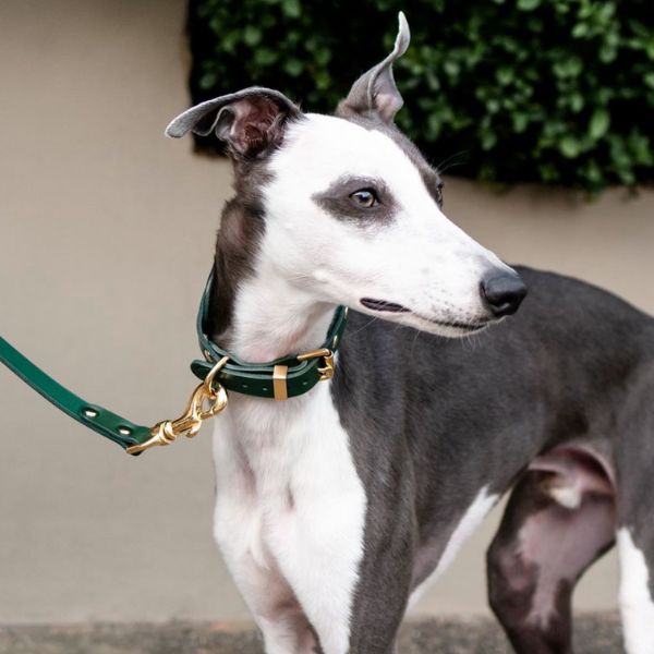 Vackertass Collar // Klassisches Lederhalsband (grün) XS