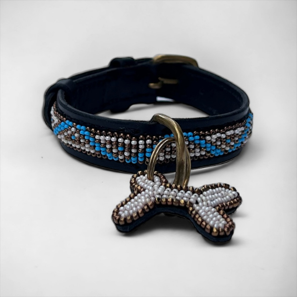 Zinj Kabaka Sky // Handgefertigtes Hundehalsband mit Perlen