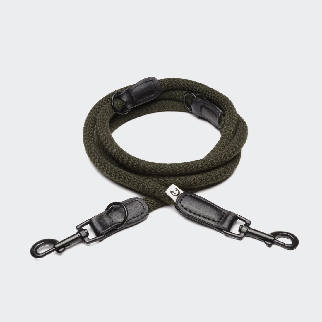 Praktisk, stilfuld og bæredygtig – Vegansk hundesnor lavet af sort kaktuslæder kombineret med olivengrønt bomuldsreb...