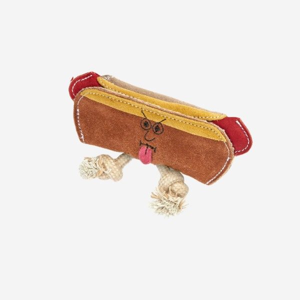 Harry The Hotdog // Wildleder-Hundespielzeug mit Jutefüllung (Hotdog)