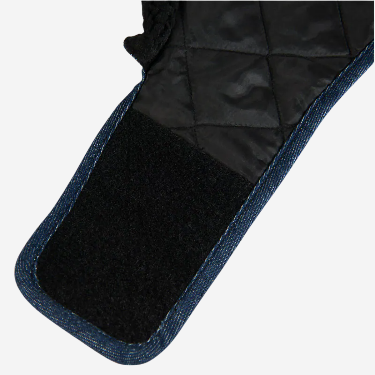 Eine strapazierfähige und warme Hundejacke von Carhartt aus gewaschenem Baumwoll-Denim mit strapazierfähigem, gestepptem Futter, die Ihren Hund sowohl bei Wind als auch bei leichtem Regen schützt. Die Jacke hat verstellbare Klettverschlüsse an Hals und Brust, sodass sie nicht über den Kopf gezogen werden muss und sich leicht an- und ausziehen lässt.