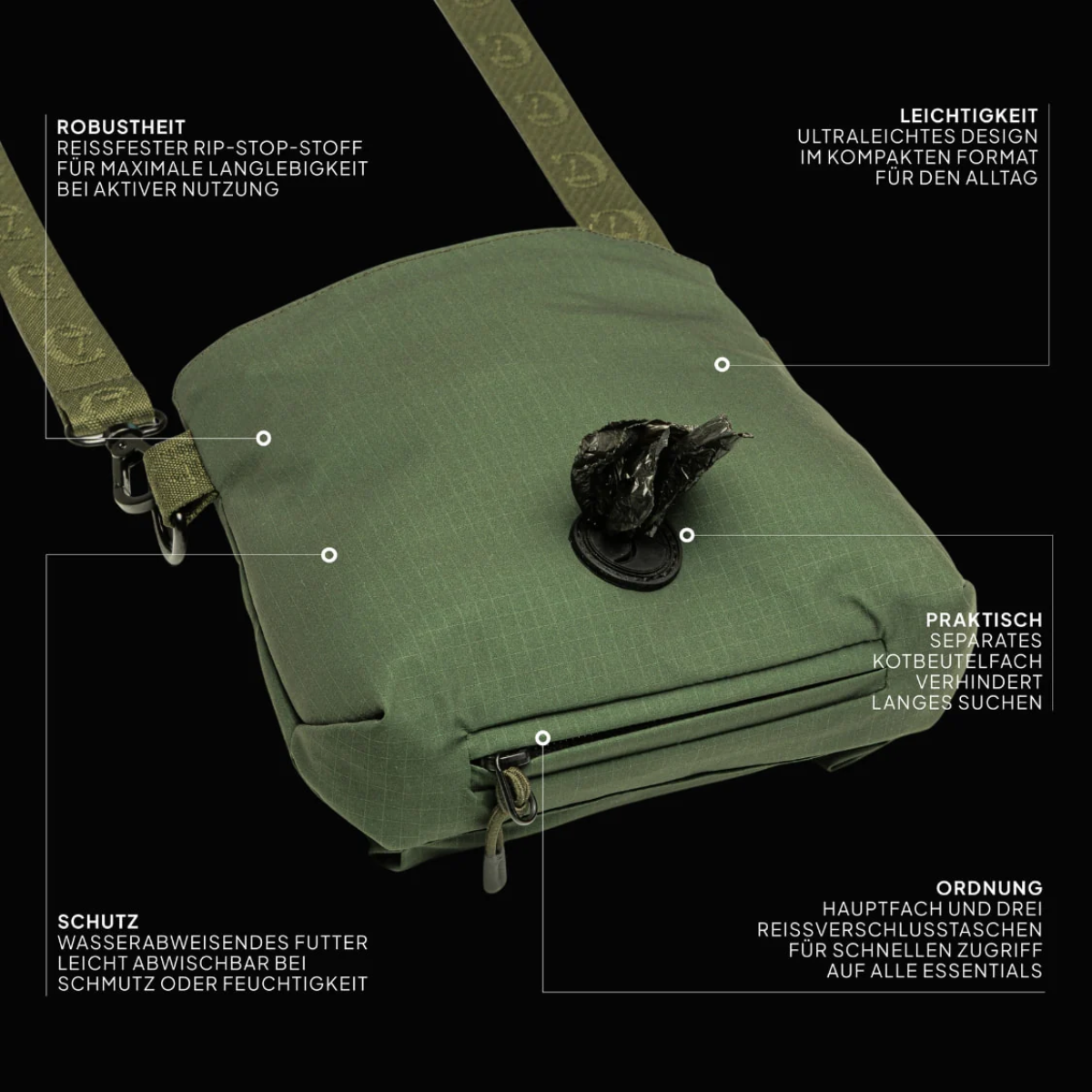 Cloud7 AKTIV Goodie Bag // Crossbody godbidstaske og hundposeholder (olive)