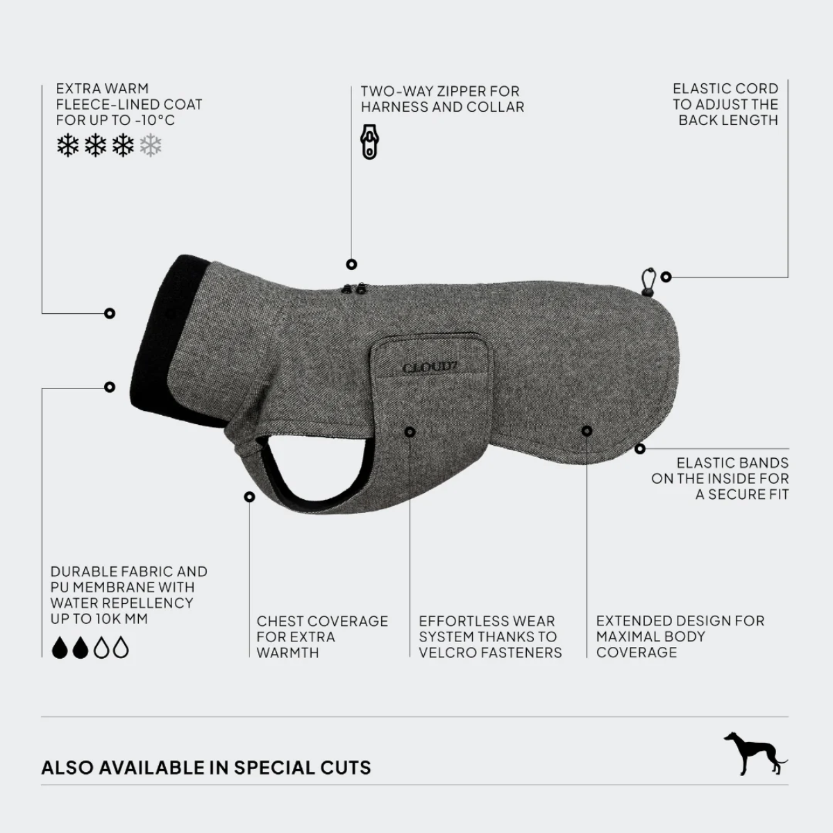 Cloud7 Brooklyn Long // Varmt og vandtæt hundedækken (tweed black)