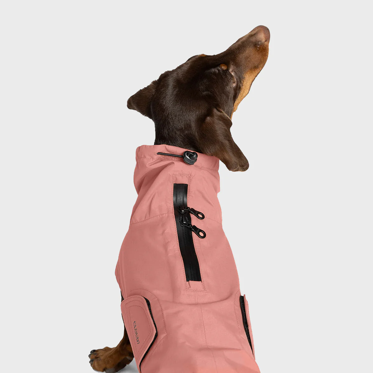 Die Regenjacke besteht aus 70 % recyceltem Polyester und fühlt sich weich und kuschelig an. Sie ist wasserdicht und robust genug für wildes Spielen im Regen. Der lange Reißverschluss ermöglicht einfachen Zugriff auf Halsband und Geschirr, und der verstellbare Kordelzug hält die Jacke an Ort und Stelle, auch wenn Ihr Hund mit voller Geschwindigkeit losrennt.