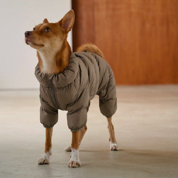 Halten Sie Ihren Hund im kalten Winter warm mit diesem wasserabweisenden und wärmeisolierenden Schneeanzug, der bis zu -10 °C wärmt.