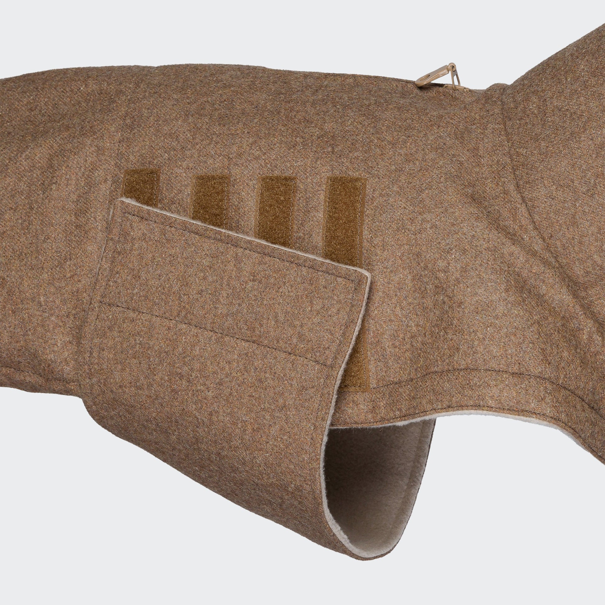 Die Jacke besteht aus warmer, wasserabweisender Wolle mit einem weichen und warmen Fleecefutter. Die Hundejacke für Französische Bulldoggen verfügt über die klassischen Cloud7-Details: Klettverschluss, Reißverschluss für den Geschirrzugang und verstellbarer Halsverschluss. So ist die optimale Passform garantiert und die Regenjacke lässt sich leicht anziehen.