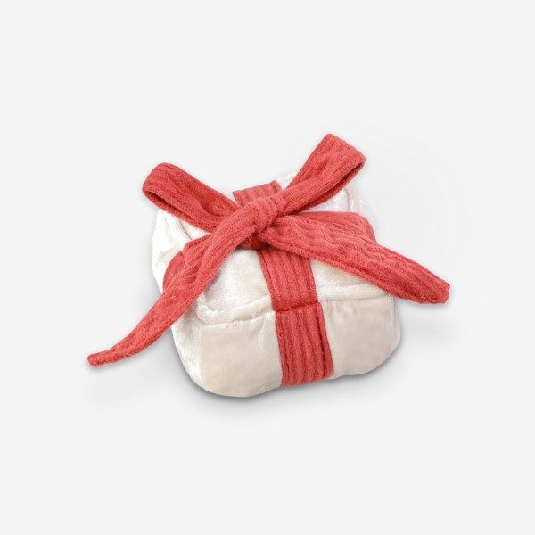 Das perfekte Geschenk für unter den Weihnachtsbaum oder zum Geburtstag Ihres Vierbeiners. Das Geschenk hat in der Mitte einen „Piepton“ und das Band lässt sich abnehmen und wieder anbringen, sodass Sie es auch zum Verstecken von Leckerlis als Belohnung verwenden können! Wir empfehlen das Spielzeug für Welpen und kleine Hunde.