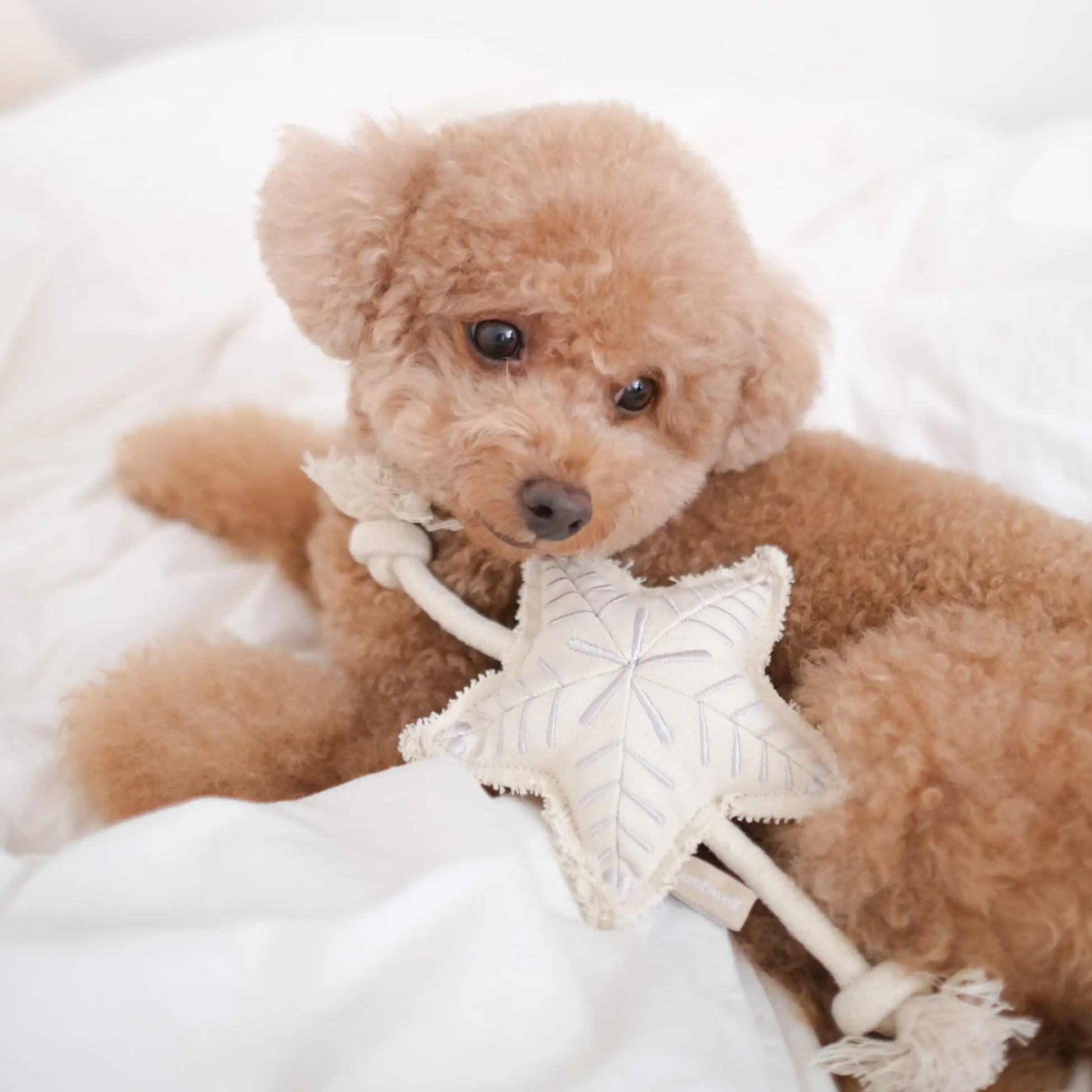 Vervollständigen Sie die Weihnachtsstimmung in Ihrem Zuhause mit diesem Weihnachtsstern aus Segeltuch und mit Seil, an dem Ihr Hund ziehen und beißen kann.