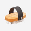 Når børsten ligger direkte i hånden, får du en bedre fornemmelse for tryk og intensitet, så du nemt kan tilpasse børstningen til din hund. De robuste stålpigge synker ikke ned i puden og trækkes ikke ud, hvilket gør børsten særlig velegnet til lang pels.