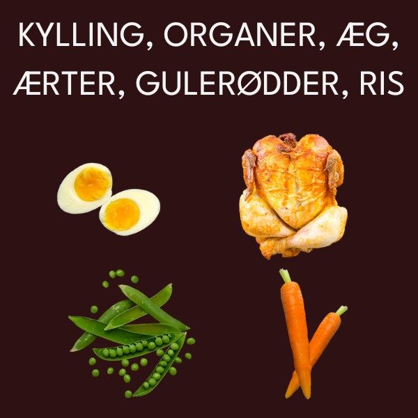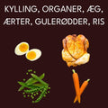 Dieses komplette Menü besteht aus frischem Hähnchen, knackigen Karotten, süßen Erbsen, Eiern und Reis. Hähnchen ist eine fettarme Quelle für gesundes Eiweiß und das Gemüse enthält viele gesunde Vitamine, Ballaststoffe und Nährstoffe, die unter anderem zur Senkung des Cholesterinspiegels beitragen können. Das Menü ist außerdem glutenfrei.