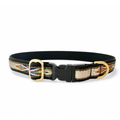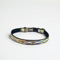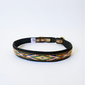Wunderschönes und einzigartiges Halsband für kleine und mittelgroße Hunde, gewebt in einem Bohème-Muster mit Messingringen, einer verstellbaren Schnalle und einer Klickschnalle aus schwarzem Kunststoff.