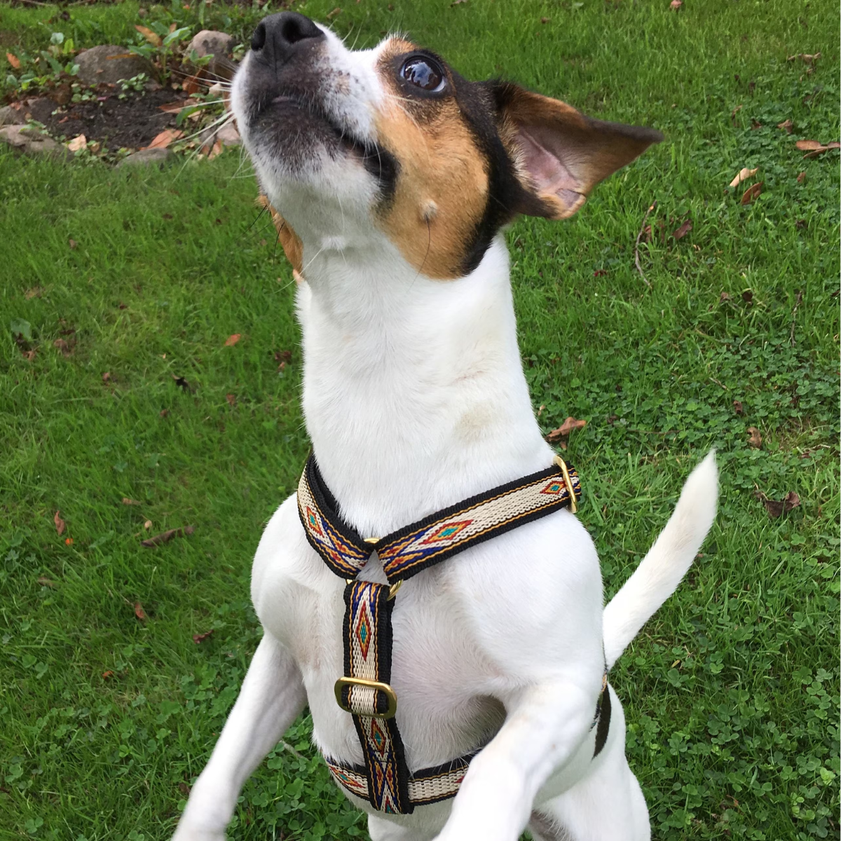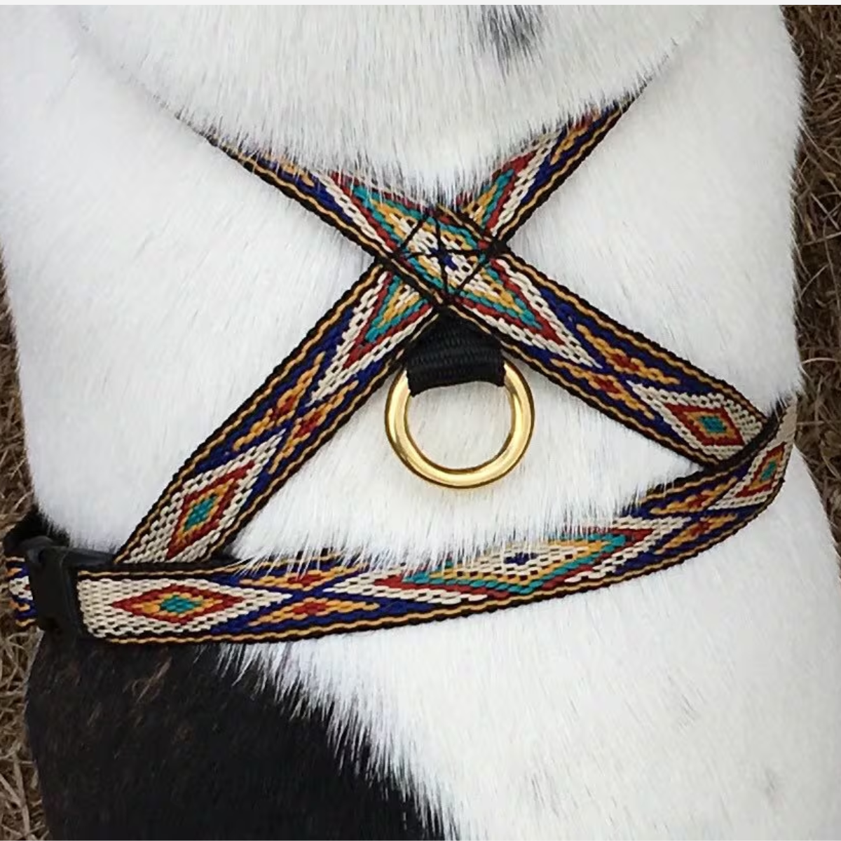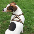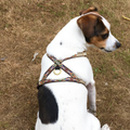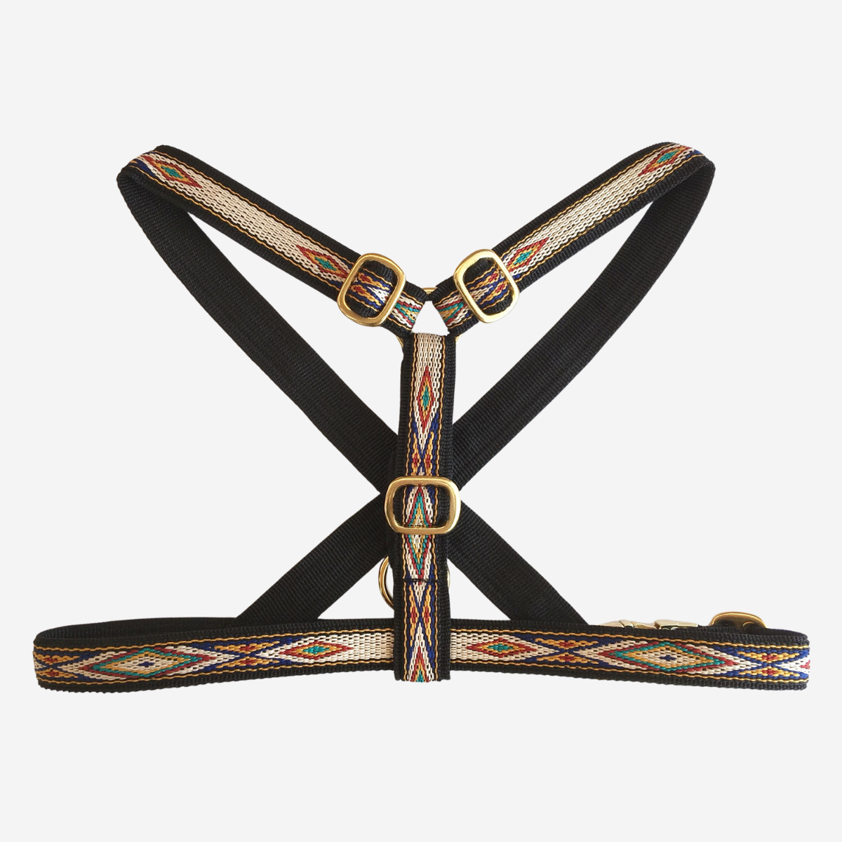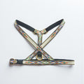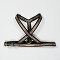 Das perfekte Geschirr für kleine Hunde, bei denen Passform und Design im Vordergrund stehen. Das Geschirr besteht aus gewebten 13 mm breiten Riemen und ist sowohl vorne als auch hinter den Vorderbeinen und zwischen den Beinen verstellbar. Messingringe, goldene Verstellschnallen und eine schwarze Kunststoff-Klickschnalle machen das Geschirr ultraleicht. Die V-Form an der Vorderseite ermöglicht dem Hund freie Schulterbewegung und verhindert, dass das Geschirr am Hals spannt.