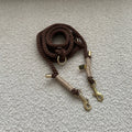 Genießen Sie einen Kaffee auf Ihrem Spaziergang, wobei Sie mit dieser Leine beide Hände frei haben! Die Leine hat zwei solide Messingringe, die es auch ermöglichen, sie auf die gewünschte Länge einzustellen.