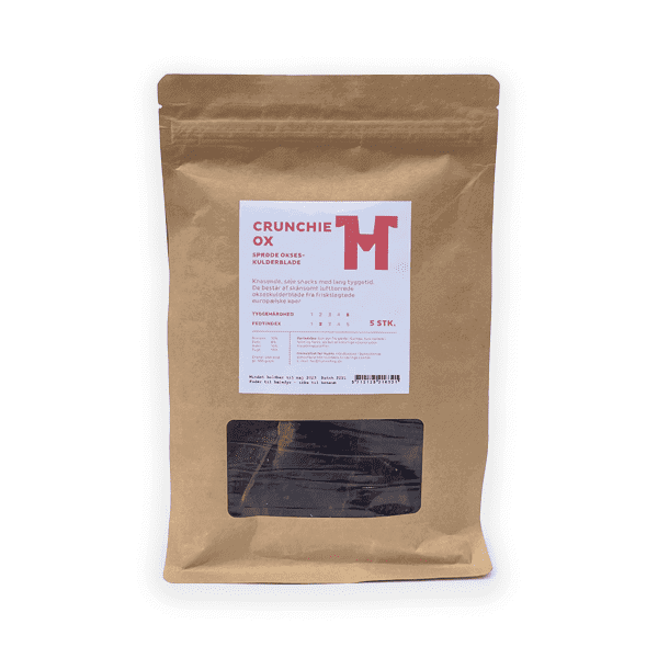 Ox Crunchies sind knusprige Kausnacks mit langer Kauzeit – perfekt für kaufreudige Hunde. Sie werden aus schonend luftgetrockneter Rinderschulter von schlachtfrischen europäischen Kühen hergestellt und enthalten keine Konservierungsstoffe oder andere Zusatzstoffe.