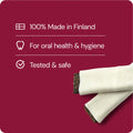 Lagern Sie es trocken bei Zimmertemperatur, behalten Sie Ihren Hund beim Kauen im Auge und stellen Sie sicher, dass immer frisches Wasser zur Verfügung steht.