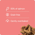 Weiche, leckere Leckerlis aus 93 % frischem Lachs und 7 % Pflanzenfasern – das Fleisch wird bei niedriger Hitze geröstet und anschließend getrocknet, um seinen natürlichen und köstlichen Geschmack zu bewahren. Die Leckerlis sind getreidefrei und enthalten keine Farb- oder Konservierungsstoffe. Die natürlichen Omega-3-Fettsäuren im Lachs sind besonders gut für Fell und Haut Ihres Hundes – die Leckerlis eignen sich daher sowohl zum Training als auch zum Verwöhnen!