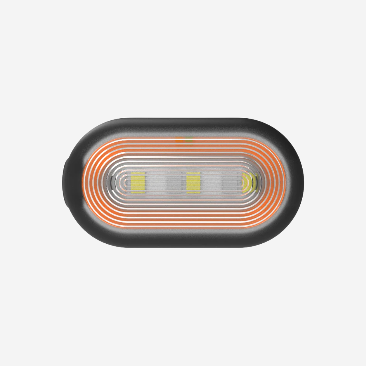 Det genopladelige batteri sørger for stabil drift. Når batteriniveauet når under 10 %, aktiveres Eco-tilstand, som reducerer forbruget og giver fortsat blinklys, så I kommer sikkert hjem. Oplades med det medfølgende USB-A til USB-C-kabel.