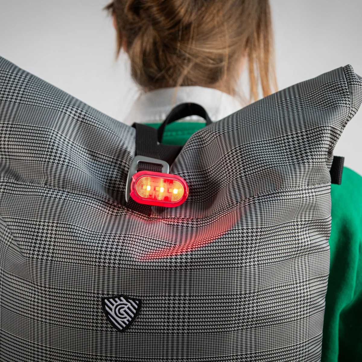 Det genopladelige batteri sørger for stabil drift. Når batteriniveauet når under 10 %, aktiveres Eco-tilstand, som reducerer forbruget og giver fortsat blinklys, så I kommer sikkert hjem. Oplades med det medfølgende USB-A til USB-C-kabel.