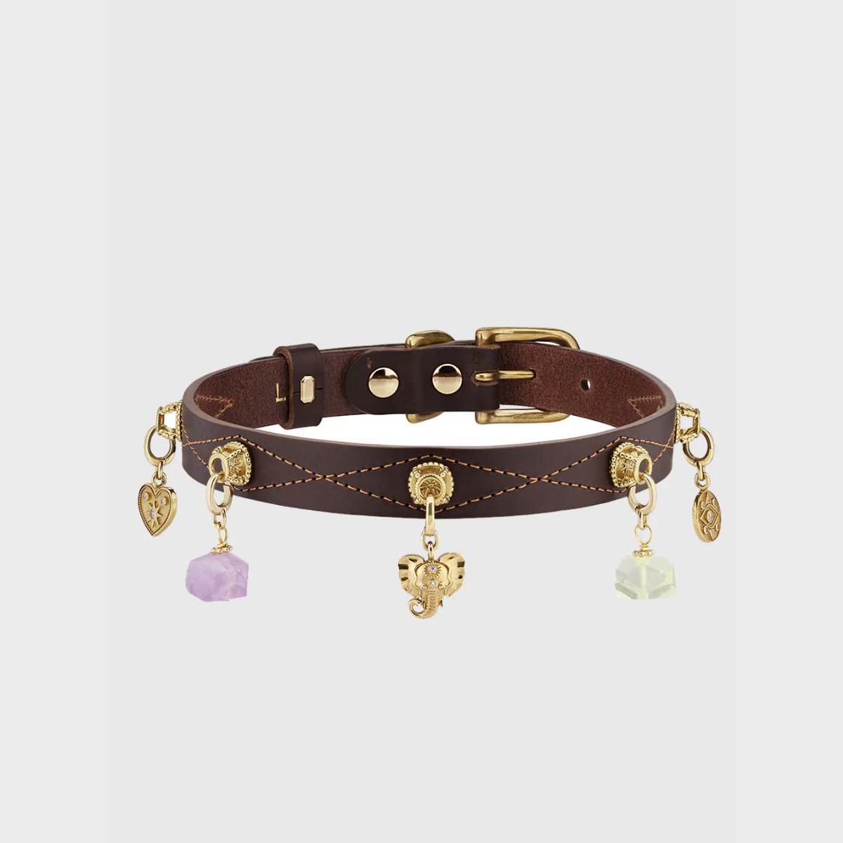 Det helt unikke hundehalsbåndet fra Unleash Cph er skabt til at bære spirituelle charms med stil. Hvert halsbånd har den karakteristiske Vajra-krog – udviklet særligt til Unleash Cph Charms, så vedhængene altid vender smukt og bliver en naturlig del af hundens udtryk.