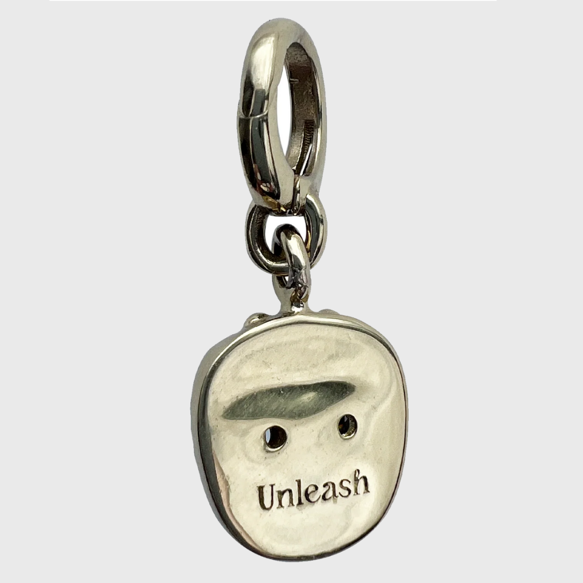 Charm’en kan sættes på alle halsbånd i Unleash Cph hundekollektion. Den er designet med aktive, legesyge hunde i tankerne: helt lydløs i brug, let og behagelig at bære og udstyret med en sikker kliklås, der ikke sætter sig fast på grene under leg.