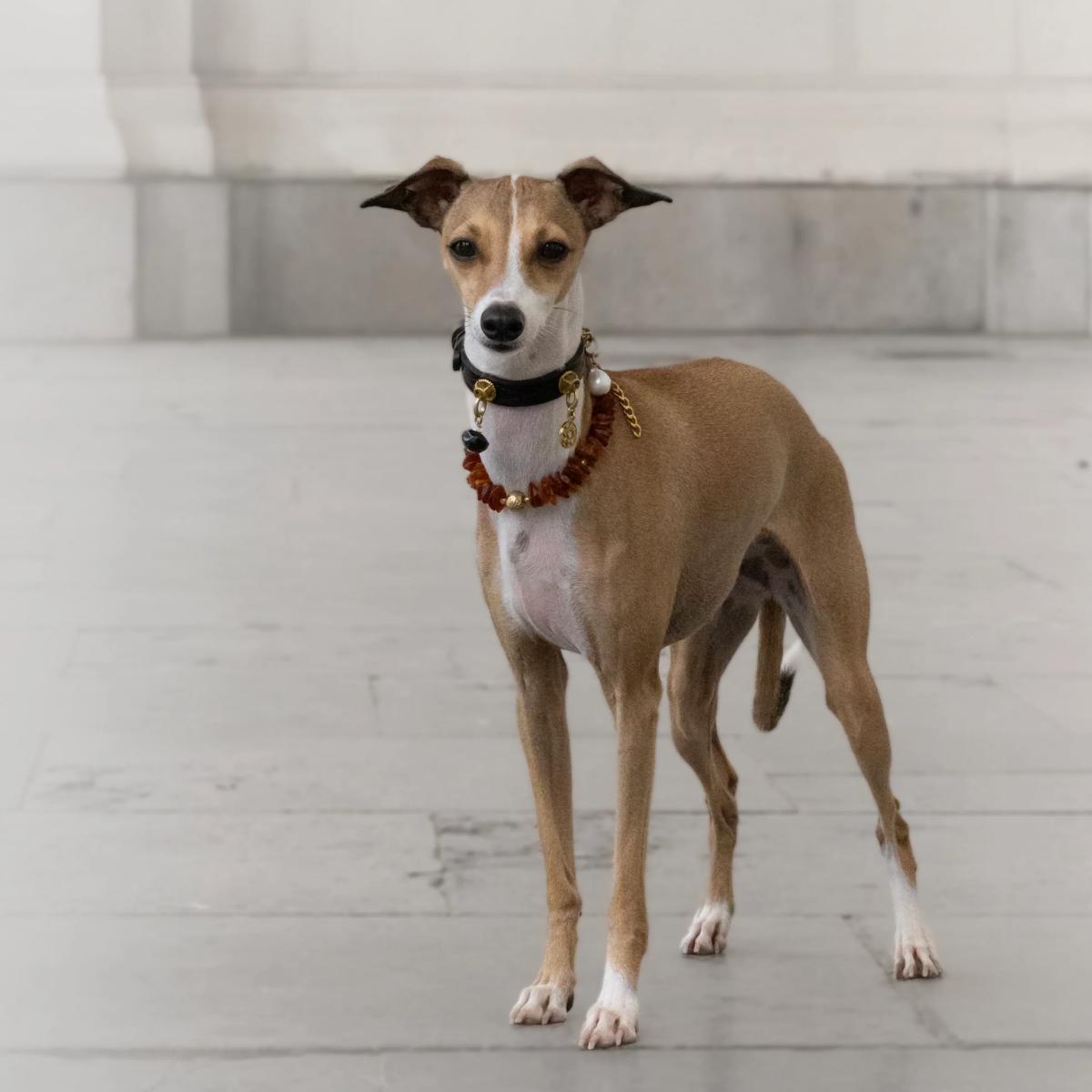 Hundehalskæden er dekorativ accessory, der kun er beregnet til lejlighedsvis brug eller til rolige ture i byen. De er ikke designet til vild leg eller aktiviteter i naturen. Fastgør venligst ikke en line til halskæden. Den bør kun bruges til særlige lejligheder og skånsom brug.
