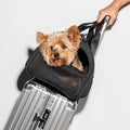 Eine minimalistische und schöne Reisetasche für den kleinen Hund, der auf Reisen geht. Sie ist aber nicht nur schön, sondern auch funktional. Das Mesh-Material sorgt dafür, dass Ihr Hund viel frische Luft bekommt. Die Reisetasche lässt sich oben über Doppelreißverschlüsse öffnen und verfügt über Tragegriffe und einen langen Schultergurt. Die Flugtasche lässt sich außerdem mit einer praktischen Tasche am Griff Ihres Rollkoffers befestigen.