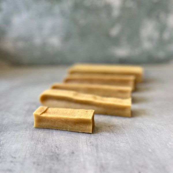 Die harte Textur ermöglicht eine lange Kauzeit, was die Verdauung unterstützt, Stress reduziert und Plaque und Zahnstein vorbeugt. Der natürliche Kalziumgehalt des Käses trägt zudem zu gesunden Zähnen und Knochen bei.